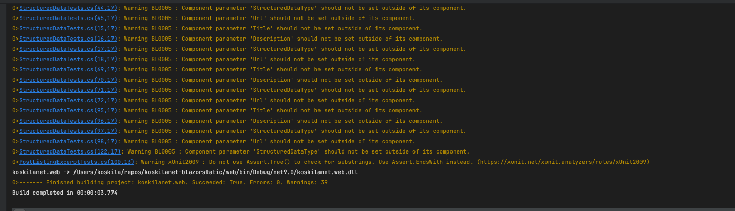 I ran it in JetBrains Rider again, but in reality, it's just a command along the lines of dotnet run --project koskilanet.web.csproj --launch-profile prod, so the IDE shouldn't matter here.