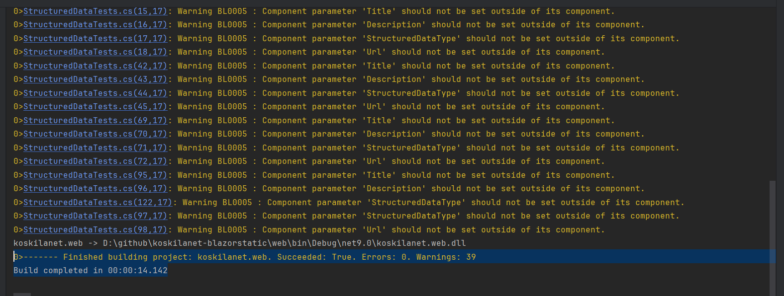 I made sure to run a rebuild configuration on JetBrains Rider to build the library that actually builds the static site, but without generating the site itself.