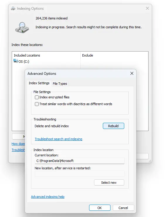So after the last time I had to reinstall my Windows 11 (after a driver update caused a delightful bootloop - a constant loop of booting up, throwing a BlueScreen of Death, and booting up again), I ended up with a funny and perfectly dysfunctional Windows Search configuration. I needed to fix that, and figured I'd share what I did with the chance it's helpful to someone else too.