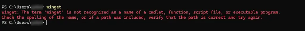 winget: The term 'winget' is not recognized as a name of cmdlet, function, script file, or executable program. Check the spelling of the name, or if a path was included, verify that the path is correct and try again.